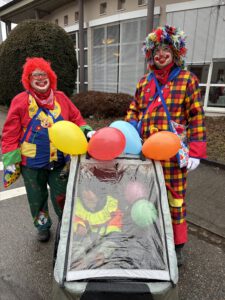 Wenn die kleinen Clowns wegen Corona nicht zum Nikolaus kommen können, kommt der Nikolaus eben zu den Kindern. Alles Corona konform natürlich.